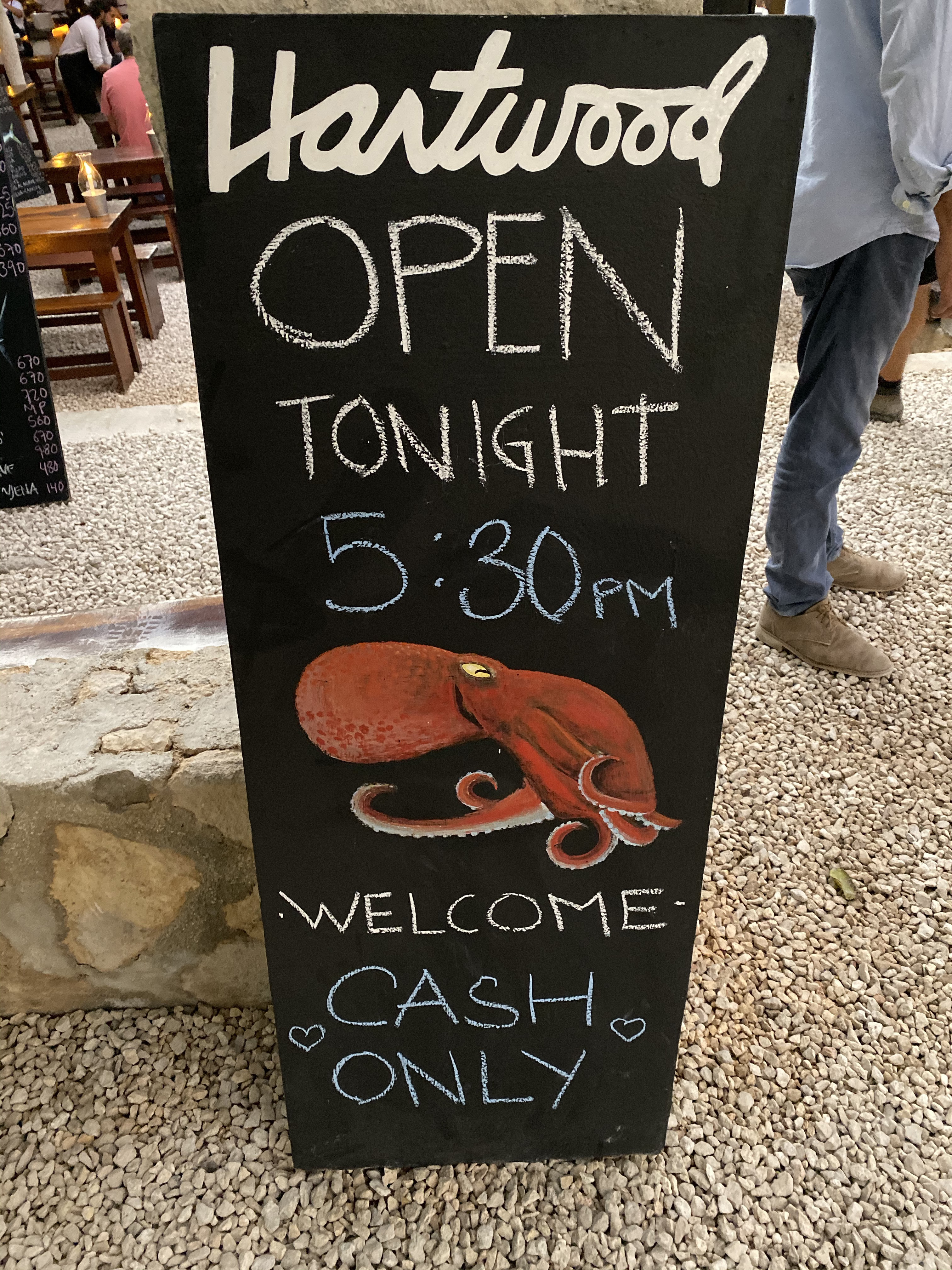Here’s the vibe at Hartwood. They are only open for dinner. They have solar panels, so their lights and music are powered by the sun. They cook by woodfire. So during the day, while the solar panels are charging, they drive around the peninsula buying fresh food, then coalesce in the evening to cook it for you. They take reservations somehow but do not have fancy machinery like a credit card machine. It’s pesos-only, which you count out with the flashlight on your phone. But it’s good as fuck, so they can do whatever they want, as evidenced by the monospace body copy on their website.