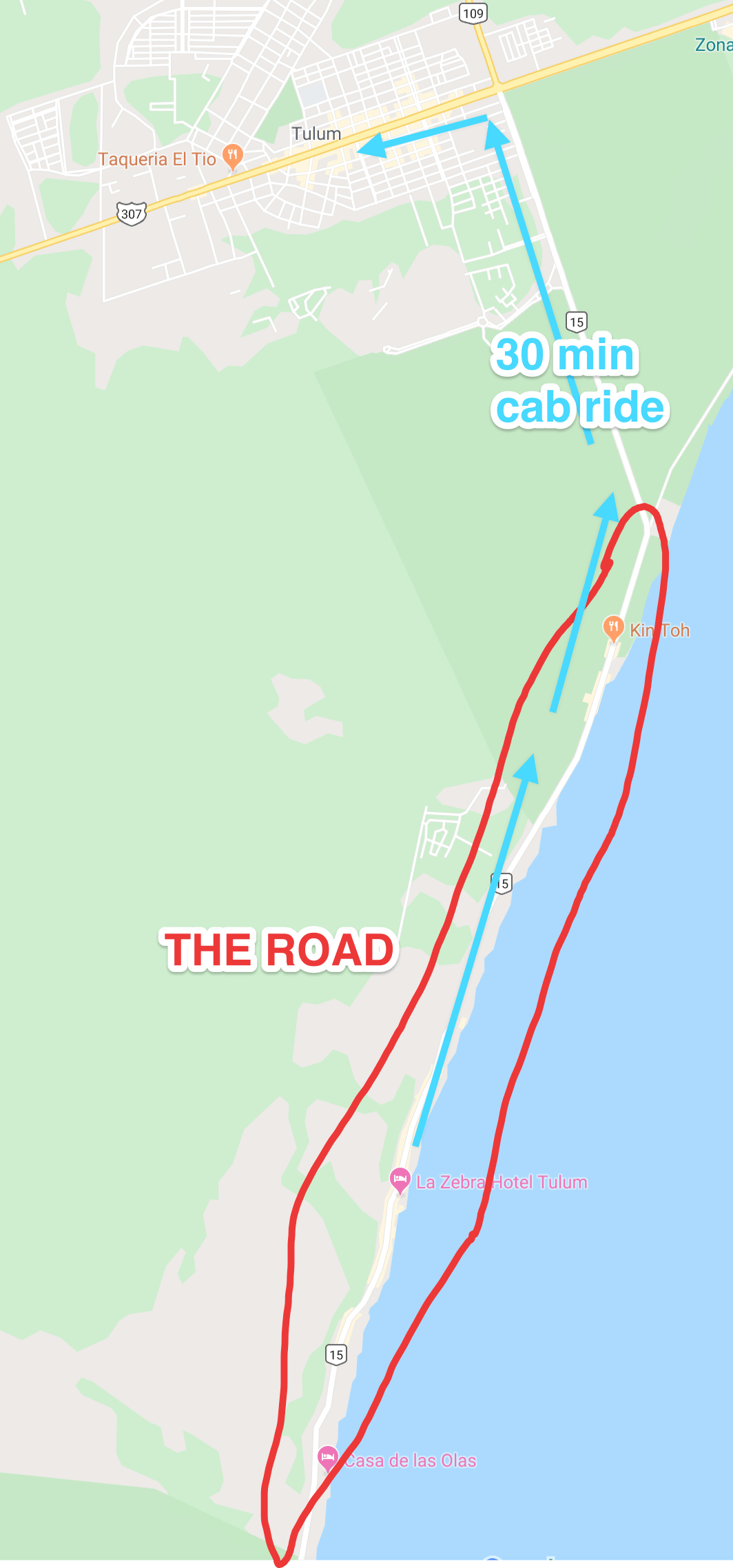 If they turned THE ROAD into a boardwalk for walkers and bikers and somehow moved the road away a bit, it would be the coolest boardwalk in the damn world. The way it is now, it was a little stressful for me. I got more used to it as the week went on, but it still feels like the #1 opportunity for Tulum to improve.